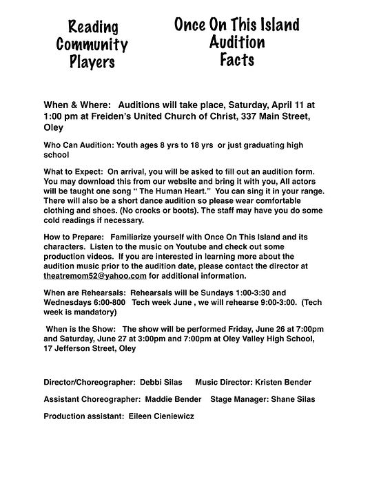 These four narrators tell the story of the Once On This Island Junior. They can be female or male. These four roles are perhaps the most difficult of the show. Not only do they sing the bulk of the show, they also tell the story.